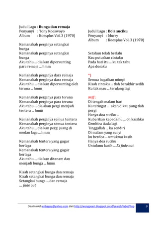 Koleksi Lirik Album Koes Plus Lengkap Enhagea Yahoo Com 2018 3 Lyric The Most Popular Song Top 30 Youtube Kumpulan Lirik Lagu Malaysia Facebook Koleksi Lirik Album Koes Plus Lengkap Enhagea Yahoo Com 2018 15 Daftar Lirik Lagu Natal Terbaru Dan Terlaris 2018 Untuk Perayaan Pdf. 07 - Bisikan Hati Di Pagi Aidilfitri - Hail Amir Datuk Sharifah Aini. Turut disediakan preview bagi setiap lirik lagu.